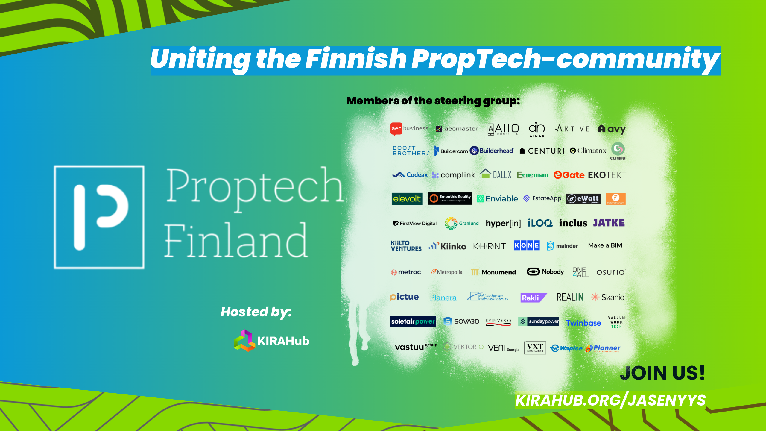 • Mahdollisuus olla osana KIRAHubin fasilitoimia temaattisia  kehitysyhteisöjä: PropTech Finland, CO2-DataHub- ja Digital Building Permit -ekosysteemien ohjausryhmätoiminta